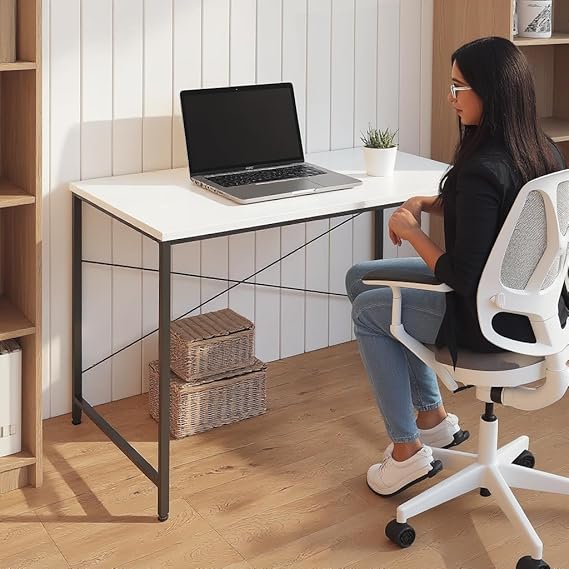 This modern study and office desk is designed for students, creators, and professionals who want a clean, distraction-free workspace. Its spacious tabletop easily fits a laptop, books, and decor while still giving you plenty of writing room. The strong metal frame provides excellent stability, and the minimalist design enhances any room—study corner, bedroom, or home office. The smooth surface is easy to clean, and the open leg space allows comfortable seating for long hours. If you want a stylish, sturdy, and practical desk that boosts your productivity and keeps your setup clutter-free, this table is the perfect choice.